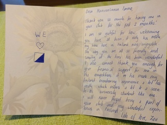 Again, thank you so much for having me and your financial support! A special thanks to Jari, the chairman of Tarmo, for your lovely hugs as I had to say goodbye. Having connections all over the world is something so invaluable. Please know that every single member of Tarmo now has a strong connection with Australia and if you ever find yourself in Hobart, Tasmania, please come and visit me!